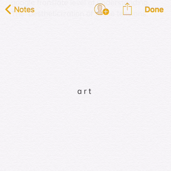 I’ve written previously on little a art, a conceptual tool to describe Art’s inability to persist as a useful category. Art may have exceeded the limits of its capacity and can’t be used without compounding qualifiers, contextualization and modifiers with any degree of accuracy. I had written little a art exists in a quantum-like state of potentiality waiting to be activated by configurations of subjects, objects and times. After de-capitalizing it I’d like to evolve, or diffuse this thinking further and offer a r t as a lexical signifier of this thinking. The space between the letters allowing for multiplicities of subjects and conditions to determine its ontology and significance. Some examples in the comments.
