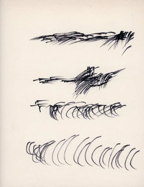 I think of Mirtha Dermisache and her asemic writing. Score-like, with something akin to physical resonance. Rocks in moving water.