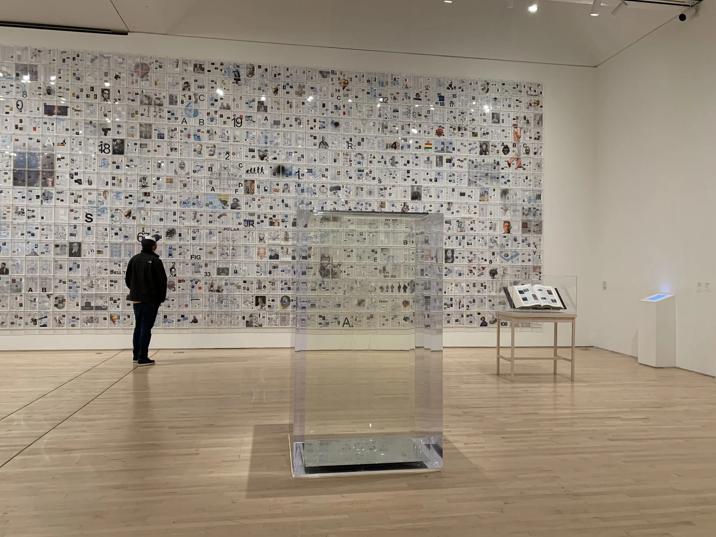 Much of the work in the show felt like the kind of imminently forgettable gallery fodder one could expect to fill the two giant SFMOMA floors it occupied, deploying a lot of scale on behalf of meager concepts. Tavares Strachan’s Encyclopedia of Invisibility is a tediously long collection described by his gallery as “...one person’s attempt to unravel the Borgesian web. Its fifteen thousand entries describe people, places, objects, concepts, artworks, and scientific phenomena that are hard to see and difficult to ascertain.” It was also Borges who wrote, “The composition of vast books is a laborious and impoverishing extravagance. To go on for five hundred pages developing an idea whose perfect oral exposition is possible in a few minutes! A better course of procedure is to pretend that these books already exist, and then to offer a resume, a commentary...” To which I would add something about the ecological disaster that is acrylic, which Strachen uses in enormous volume. That history is biased, contested and partial I understand to be a conception long put to rest and little is advanced by this gesture that re-invisibilizes these histories with a deluge of information and retrograde graphic design.